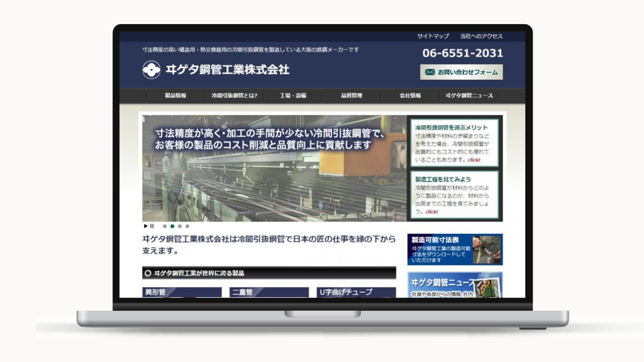 大阪府大正区にあるヰゲタ鋼管工業株式会社さまのホームページを新規制作しました。これまでホームページがなく、他社や就職希望の学生に見てもらえるものがなかったことから、製品紹介と同時に社員・就職希望者のモチベーションが上がることを目標にしました。