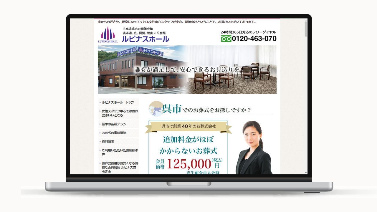 広島県呉市の阿賀、焼山地区にある葬儀会館ルピナスホールさまのサイトリニューアルのお手伝いをしました。