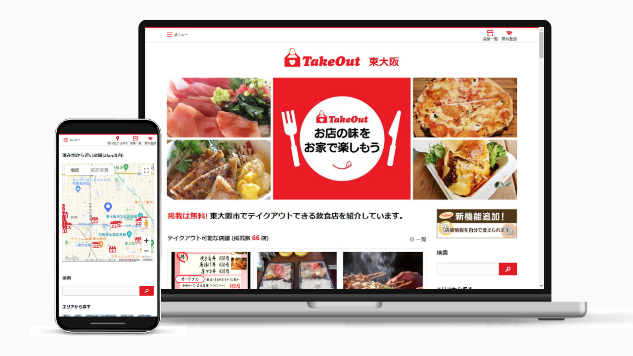 コロナ禍で外出の自粛要請が行われた際に、何かウェブ制作者としてできることはないだろうかと思い、テイクアウトができる飲食店の登録・紹介サイトを立ち上げました。店舗の管理などはa-blog cmsで行っています。