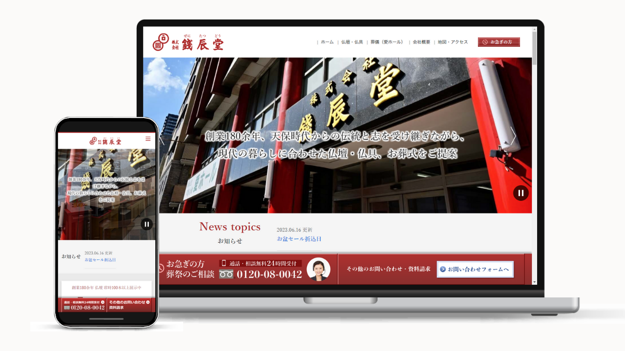 株式会社銭辰堂様のウェブサイトリニューアルをお手伝いさせていただきました。